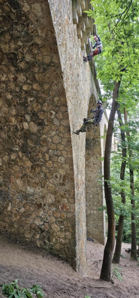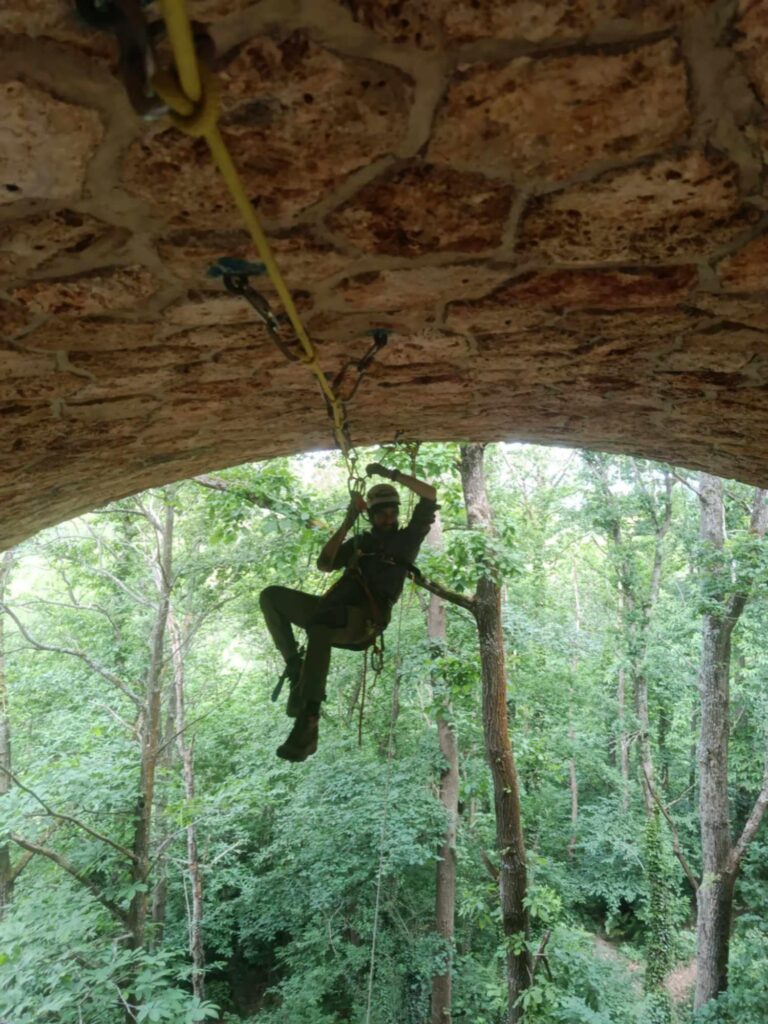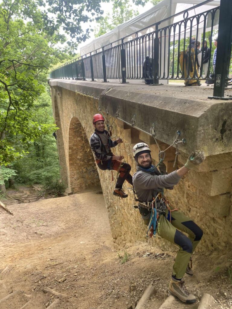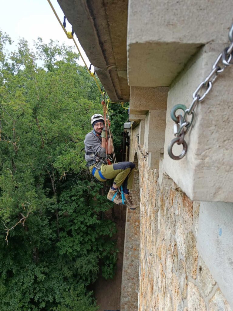 Arrivés dans la nuit de vendredi, c’est à 10 h le samedi que nous commençons par le parcours A. Nous avons tous les 2 été surpris par la hauteur et l’élasticité de la corde, elle nous fait des blagues !