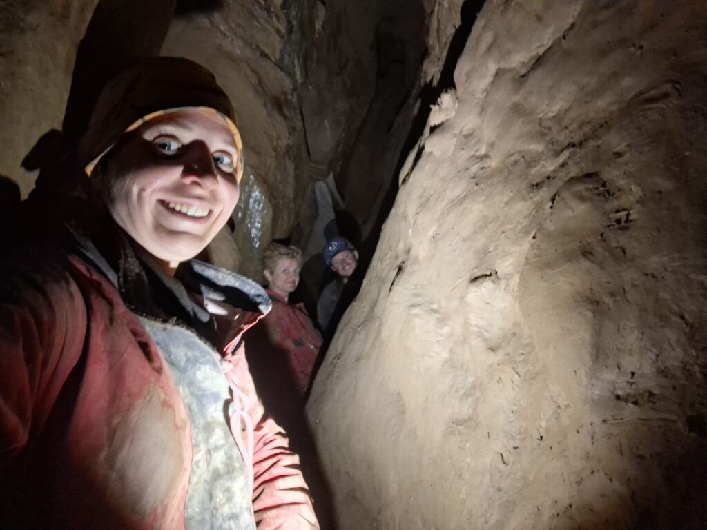 Le furet, ça faisait longtemps ! Plus d’un an car d’habitude, c’est notre sortie de janvier. Mais elle reste pour nous, incontournable. Comme d’habitude, la cavité n’attire pas les foules, et 5 répondront présents. Lionel, Laurent et Charlotte savent à quoi s’attendre… mais la doline nous a réservé une surprise ! Elle est remplie de ronces ! Encore une preuve que seul le RCAE vient faire cette grotte. Les ronces sont hautes et épaisses, on marche dessus comme si on flottait jusqu’à ce que notre poids nous enfonce ! Pendant que Lionel et Erwan feront la sieste, les 3 valeureux chercheront l’entrée. Charlotte en est sûre, elle est à droite, contre un rocher. Mais ces ronces sont tellement grandes qu’on dirait des arbres ! Nous voici face à un dixième : il fait tellement chaud que nous mourons de transpiration dans nos combis, mais quand on les retire, on se fait arracher la peau ! Après une pause où l’on essaie de retrouver nos esprits, Charlotte recherche dans les anciens résumés des photos qui pourraient aider et en trouve une de l’entrée. Maud comprend l’idée et Bingo trouve direct ! Comme quoi, ça sert d’écrire des résumés ! On appelle les 2 feignasses pour nous rejoindre et passons la petite lucarne avant de descendre le ressaut d’environ 2m. Nous arrivons rapidement au puits de la hache que Laurent équipera. Charlotte lui presse le pas pour laisser les 2 derniers arrivés se débrouiller tout seuls… avec un kit ! Nous passons le cloaque sans problème, si si, même Lionel, un habitué de l’étroiture ! Nous remontons l’escalade et passons les 2 passages étroits. S’ensuivent 2 ressauts casse-gueule que nous avons l’habitude d’équiper. Arrivés au fond, Laurent fait l’escalade pour nous installer une corde pour aller au bout du bout. À la descente, Maud glissera avec la corde, d’une manière tout à fait maitrisée parait-il ! La remontée des ressauts est longue jusqu’au puits descendant. À partir de là, Maud a appris la leçon et donnera le kit à Erwann !