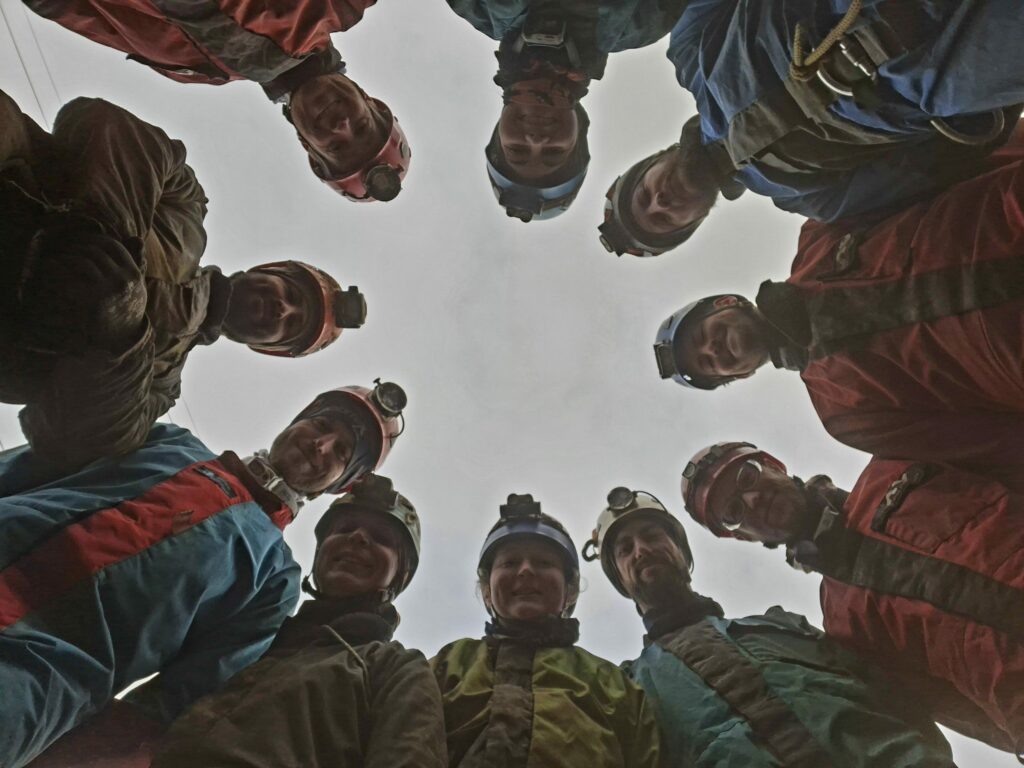 Une fois n’est pas coutume, nous revoilà dans notre belle Charwesse. Cette année, pas de nouveau mais le retour des anciens. On est 10, mais vu l’équipe, nous décidons de ne pas faire plusieurs groupes, cela nous ralentira peut-être ! La traversée se fait tranquillement mais rapidement en partageant les dernières nouvelles. C’est plié en moins de 2 h 30 ! Direction le bar où nous y resterons presque plus longtemps que dans la cavité !