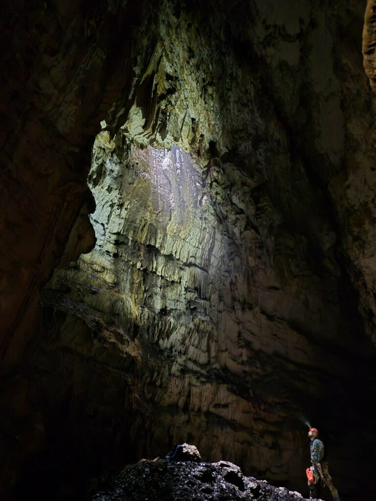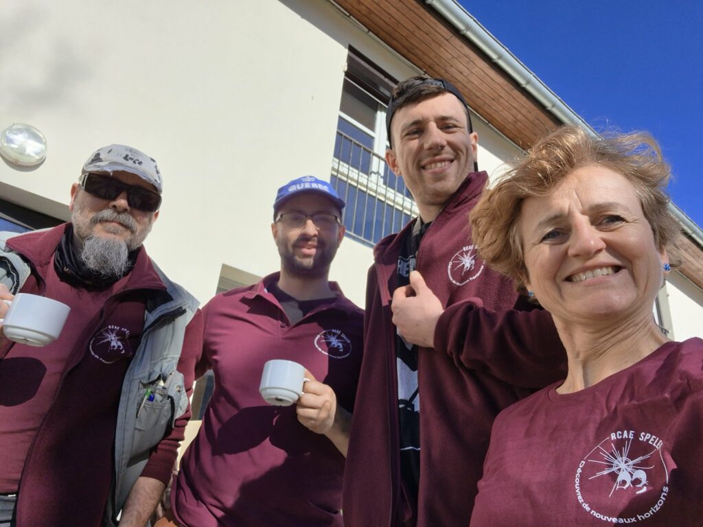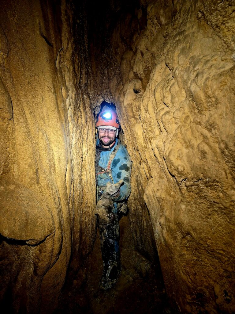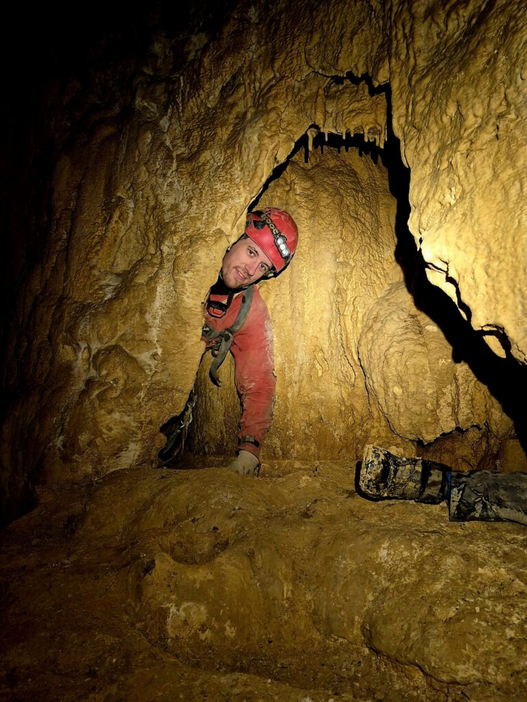 L’enchaînement des deux puits prééquipés, entrecoupés d’un méandre désobé, nous emmène rapidement au fond. Après avoir dépassé les quelques fossiles, nous atteignons une vasque boueuse défendant l’accès au ressaut de 2 mètres que seuls Stéphane et Maud tenteront de franchir pour aller voir la cheminée terminale, sans succès hélas. Nous décidons de remonter dans l’espoir d’enchainer une seconde cavité sur la journée. Le retour se passe sans encombre. Même si la cavité est annoncée avec un peu de CO2, seuls Oli et Steph ressentent un essoufflement léger à la remontée. Nous veillons à ne pas déranger dans le puits quelques chauves-souris de plusieurs espèces.
